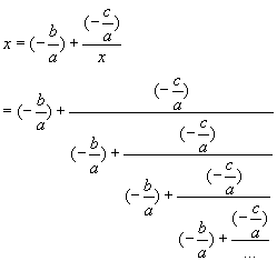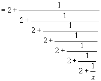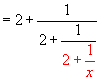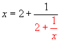 We then recursively plug in x=2+1/x to x on the right hand side.