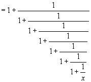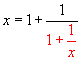 We then recursively plug in x=1+1/x to x on the right hand side.