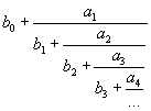 (1) Find b0 in x=b0+a1/x1 where b0 is the largest integer that is less than or equal to x if the first sign is positive. Find b0 in x=b0-a1/x1 where b0 is the smallest integer that is greater than or equal to x otherwise.