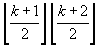 That is the products of floored value of (k+1)/2 and that of (k+2)/2.