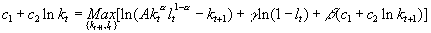 is time for leisure. For simplicity, we use the same utility function u(1-l) as u(c).