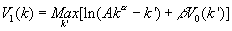 x=k, u=k’, r( )=u( )=ln( ), and ![]()